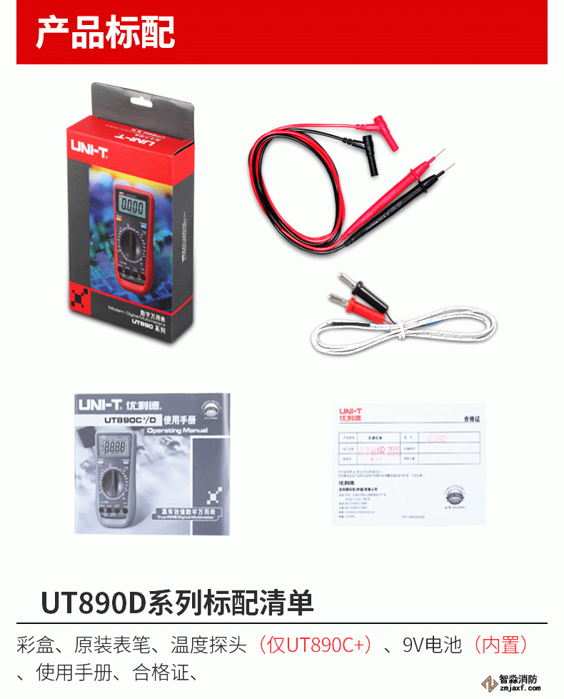 | 標(biāo)準(zhǔn)配件 | 表筆、電池、溫度探頭 (僅UT890C+) | ||
