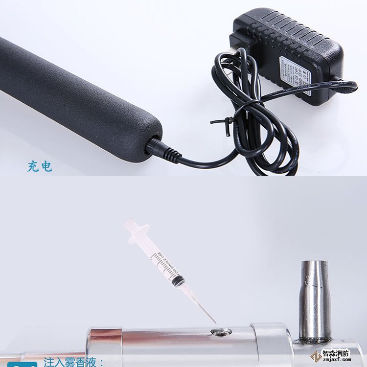 本產品采用電子感應裝置,無需手動開關,使用時打開檔位開關,距離煙感5CM時自動啟動,方便快捷,加煙器采用特制的霧香液電子霧化技術,發(fā)出的煙霧有各種香味且綠色環(huán)保,無毒無害。根據(jù)火災探測器倒掛在頂棚上的狀況,為避免加煙后煙霧長時間滯留在火災探測器迷宮內,特制霧香液霧化成煙后的比重大于空氣比重,加煙試驗后短時間內能在迷宮內快速消失,有利于提高試驗工作效率。電子霧化發(fā)煙代替原有的傳統(tǒng)的棒香加煙方式,不僅加煙方式有了進一步的升華而且煙霧中不含煙塵煙油,可避免棒香加煙所產生的煙塵煙油對火災探測器造成二次污染。同時由于該產品采用了內部霧香液循環(huán)技術,降低霧香液的自然損耗,延長了霧香液使用時間,耗材使用成本隨之減少。